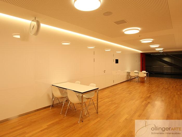 Beispielsweise sorgen wir mit Schallschutzelementen für Ruhe, mit Trennelementen für Struktur, schaffen Stauraum, ermöglichen indirektes Licht oder ein gesundes Raumklima.