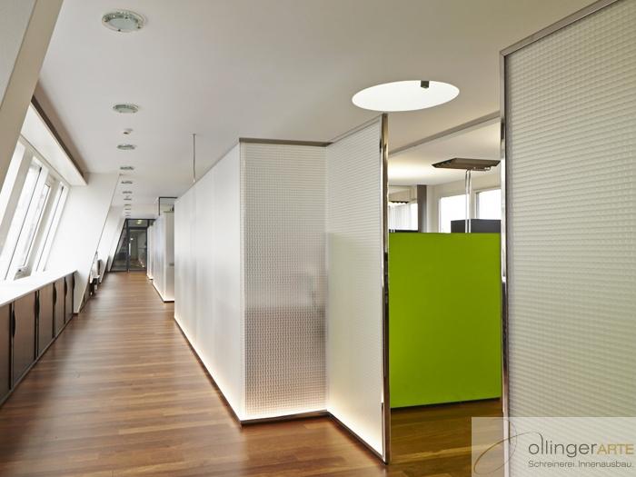 Beispielsweise sorgen wir mit Schallschutzelementen für Ruhe, mit Trennelementen für Struktur, schaffen Stauraum, ermöglichen indirektes Licht oder ein gesundes Raumklima.