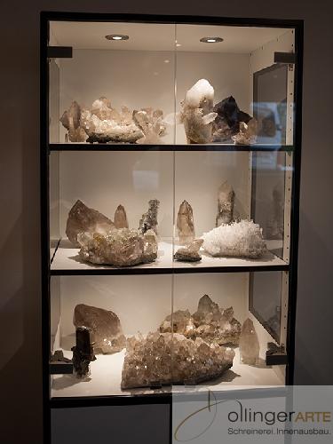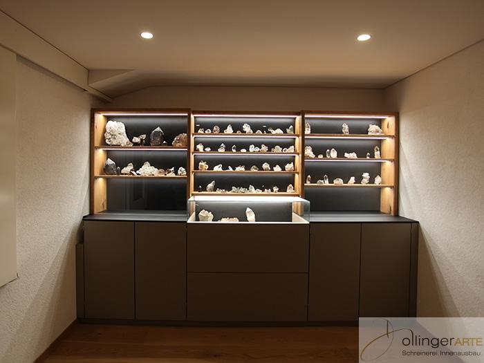 Wir fertigen sie auf Mass. Aus filigranen Profilen oder mit behäbigem Unterbau. Spot an: Die Glaskorpusse rüsten wir individuell mit Licht aus, damit Trophäen, Nippes und Artefakte noch schöner schimmern.